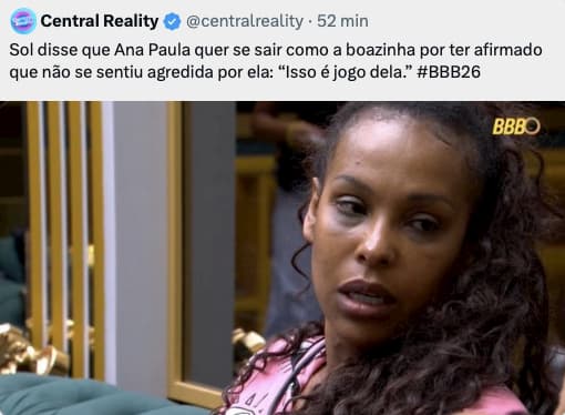 Tudo começou com aquela troca de farpas básica que a gente já conhece, mas o tom subiu rápido demais. Incomodada com as provocações de Ana Paula — que, convenhamos, sabe cutucar como ninguém —, Sol partiu para o embate físico. Segundo relatos de quem viu tudo pelo Globoplay, a Sol foi pra cima, deu uma sacudida no braço da jornalista e, para completar o combo da confusão, deu um pisão no pé da mineira.